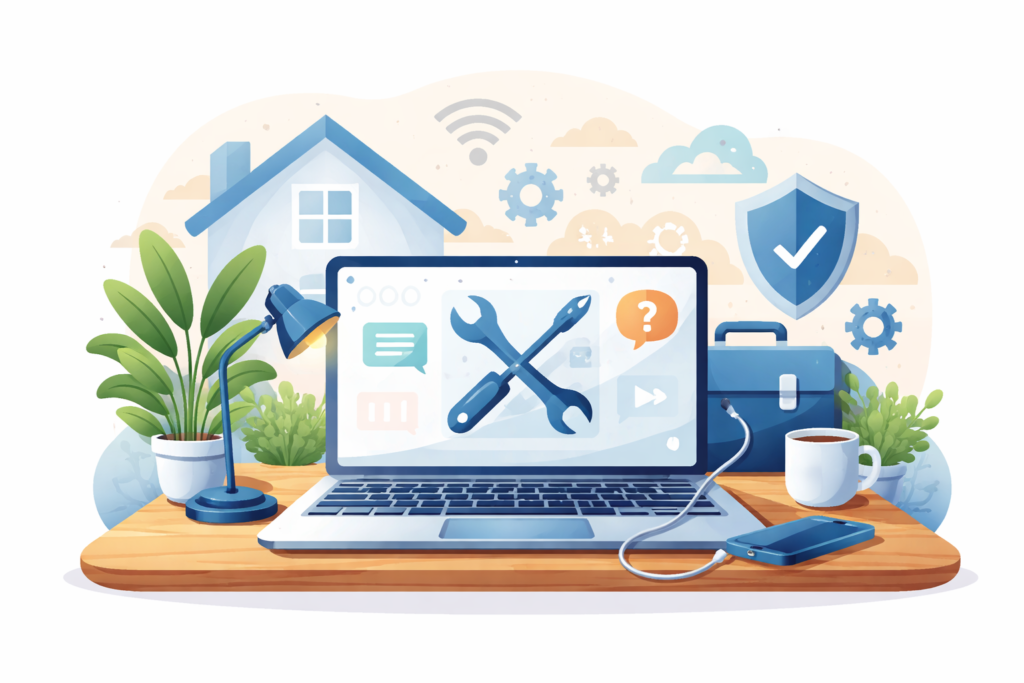 Nous proposons une assistance informatique à domicile pour vous aider à utiliser votre matériel en toute sérénité. Nous intervenons pour le dépannage informatique, le nettoyage et l’optimisation de votre ordinateur, la suppression de virus et logiciels malveillants, ainsi que pour l’installation et la configuration d’imprimantes, de logiciels ou de périphériques.